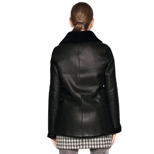 Veronica Women Fashion Black Aviator Shearling Blazer Coat