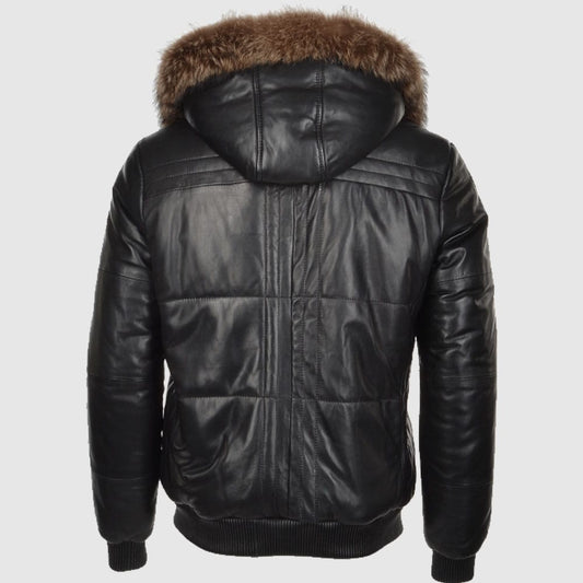 Lambskin Leather Sheepskin Lined Hooded Jacket