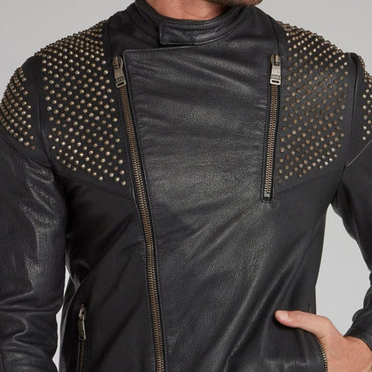 Men Make to Order Rock Punk Studded Jacket, Moto Biker Jacket