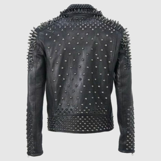 Black Spike Studded Leather Jacket