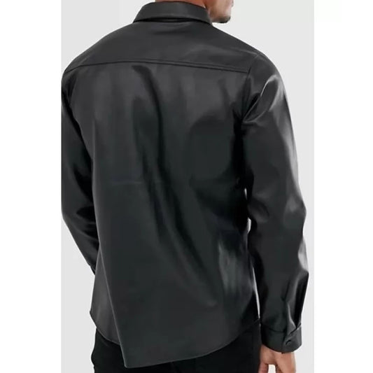 Mens Awesome Look Real Sheepskin Black Leather Shirt