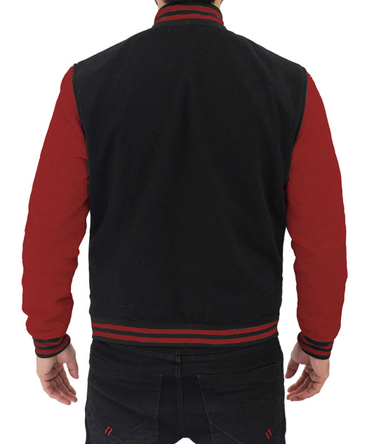 Mens Baseball Style Maroon and Black Varsity Jacket