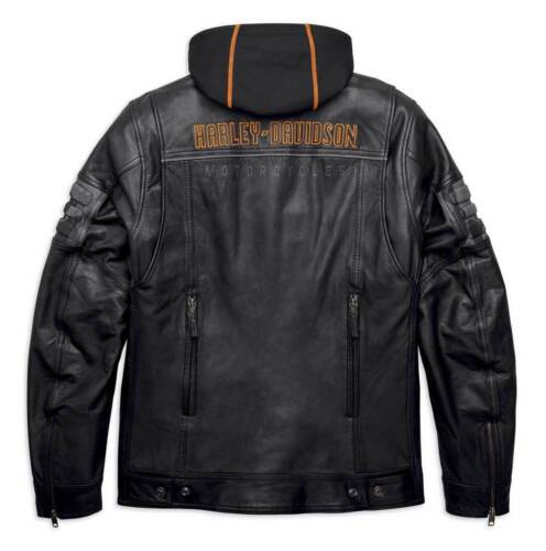 Harley Davidson Men’s Bridgeport Black Leather Jacket Hoodie 3 in 1