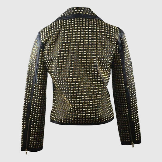 Ladies Black Leather Golden Studded Stylish Jacket Studded Punk Jacket