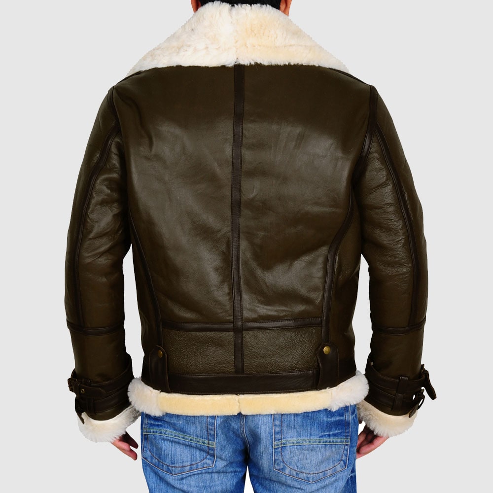 Army Green Men B3 Bomber Shearling Leather Jacket