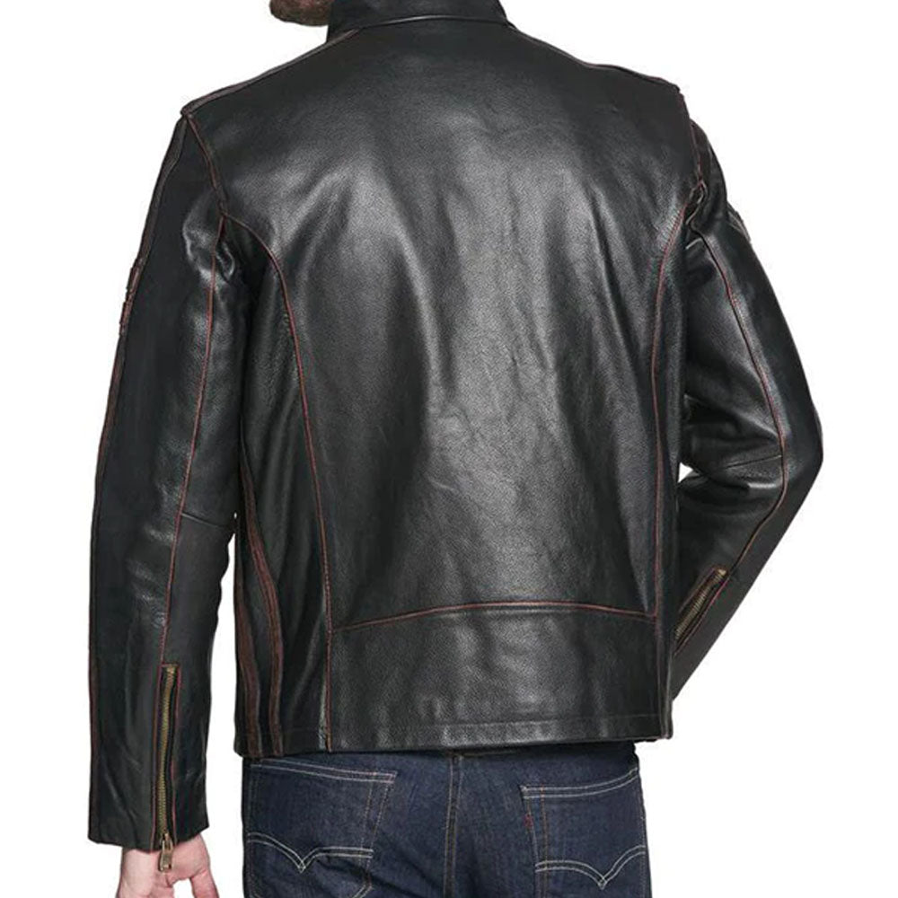 The perfect piece of outerwear has the power to pull together any look. Choose a vintage classic men’s jacket, opt for a modern style or stand out with a popping color. An iconic style with clean pristine modern tailoring, crafted using supple leather to accentuate a sleek yet relaxed look. Finished with two pockets and bann trimmings in keeping with the true unique design. Two tone color with stitch line detailing along the main body, arm and shoulder, all crafted with a palette of smooth touch finish.
