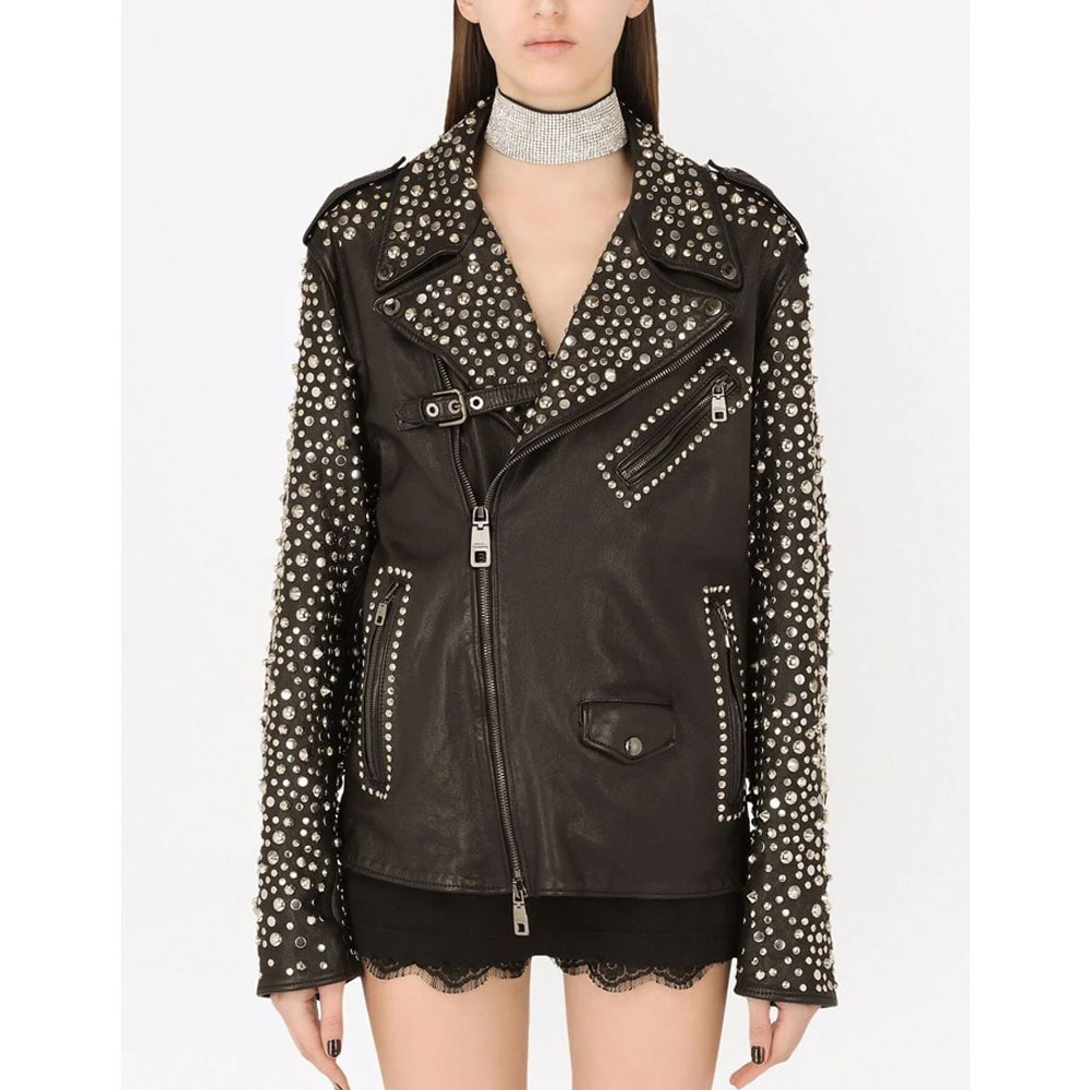 This leather jacket from Dolce & Gabbana’s SS22 collection exhibits the brand’s signature leopard print, showcased at the lining.