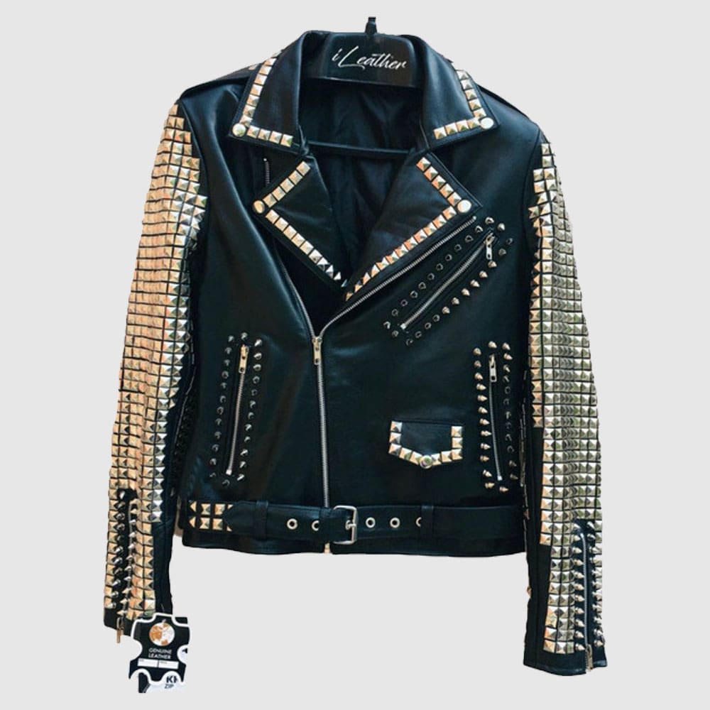 Handmade Black Color Women Silver Metal Studded Punk Leather Jacket