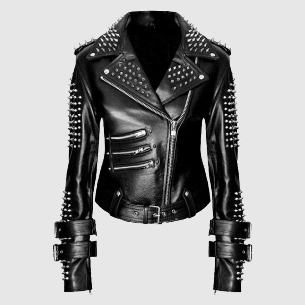 Handmade Women Black Punk Silver Spiked Studded Leather Jacket