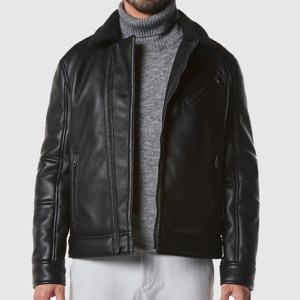 Men’s Maxton Moto Leather Jacket with Faux-Shearling Collar