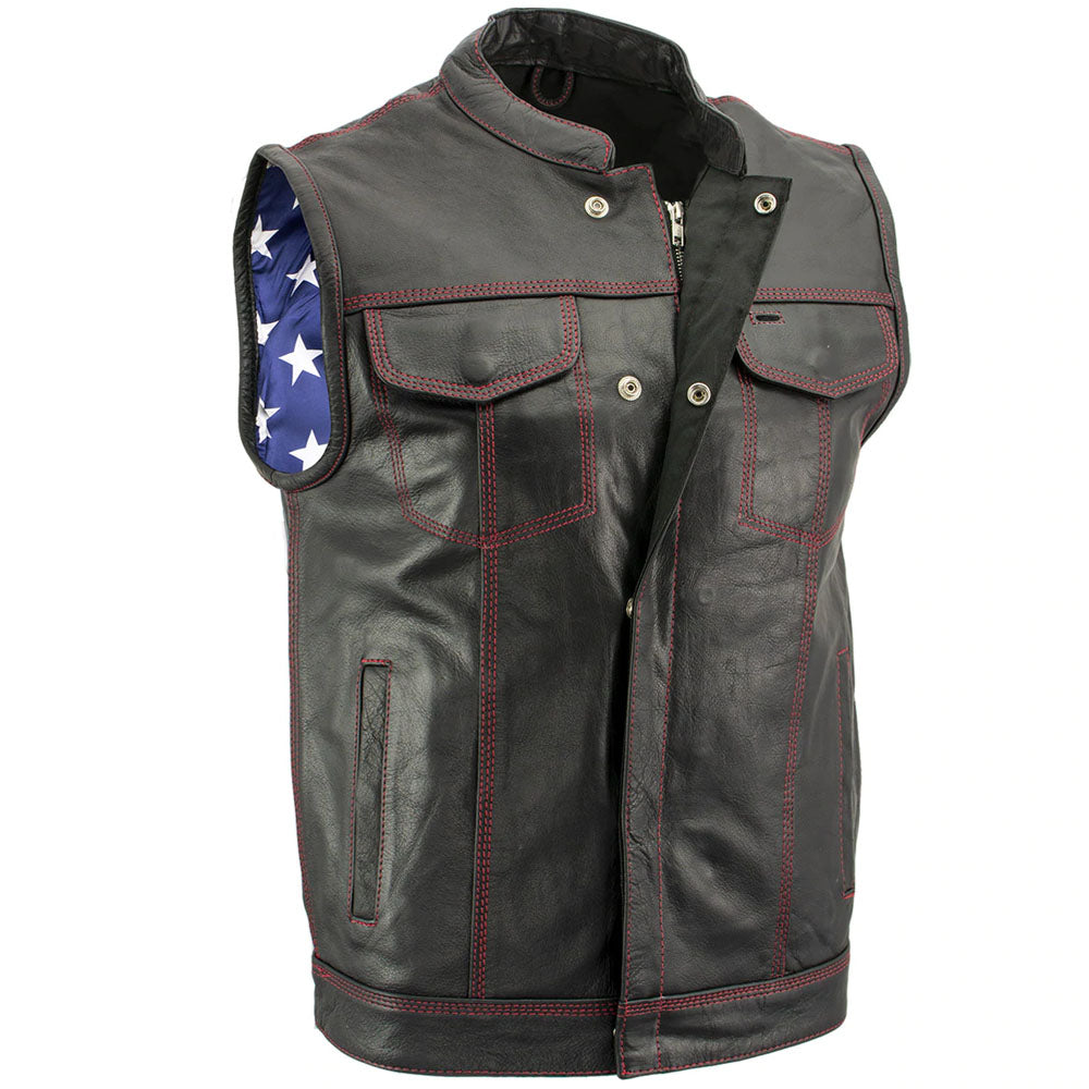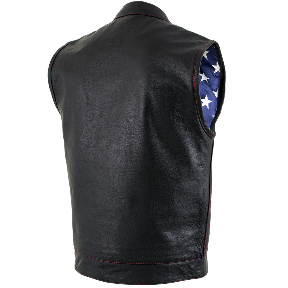 Men’s ‘Old Glory’ Leather Vest with Red Stitching and USA Inside Flag Lining