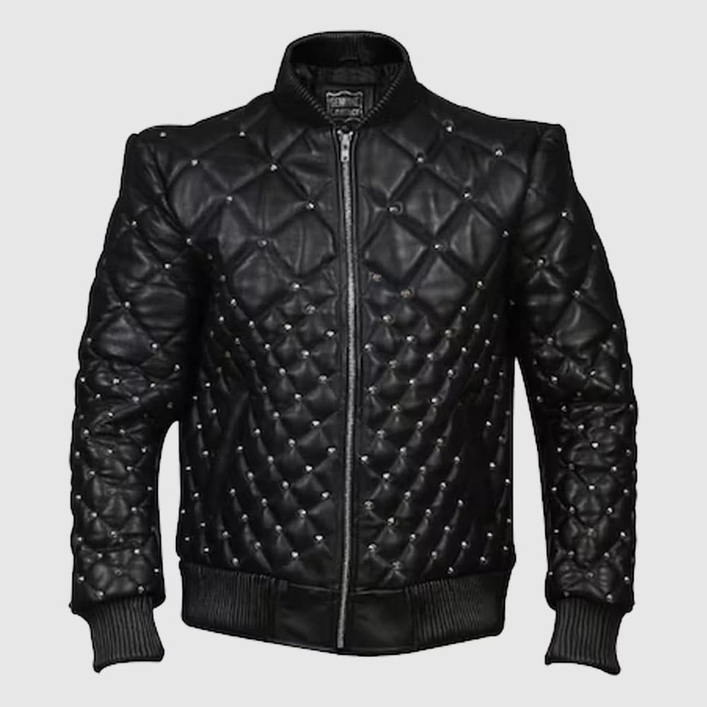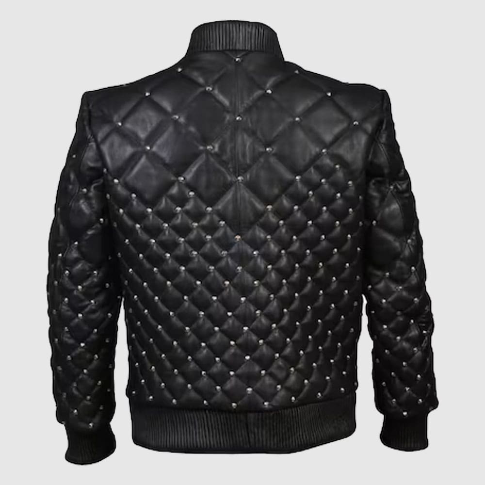 Men Studded Quilted Leather Steam Punk Motorcycle Jacket