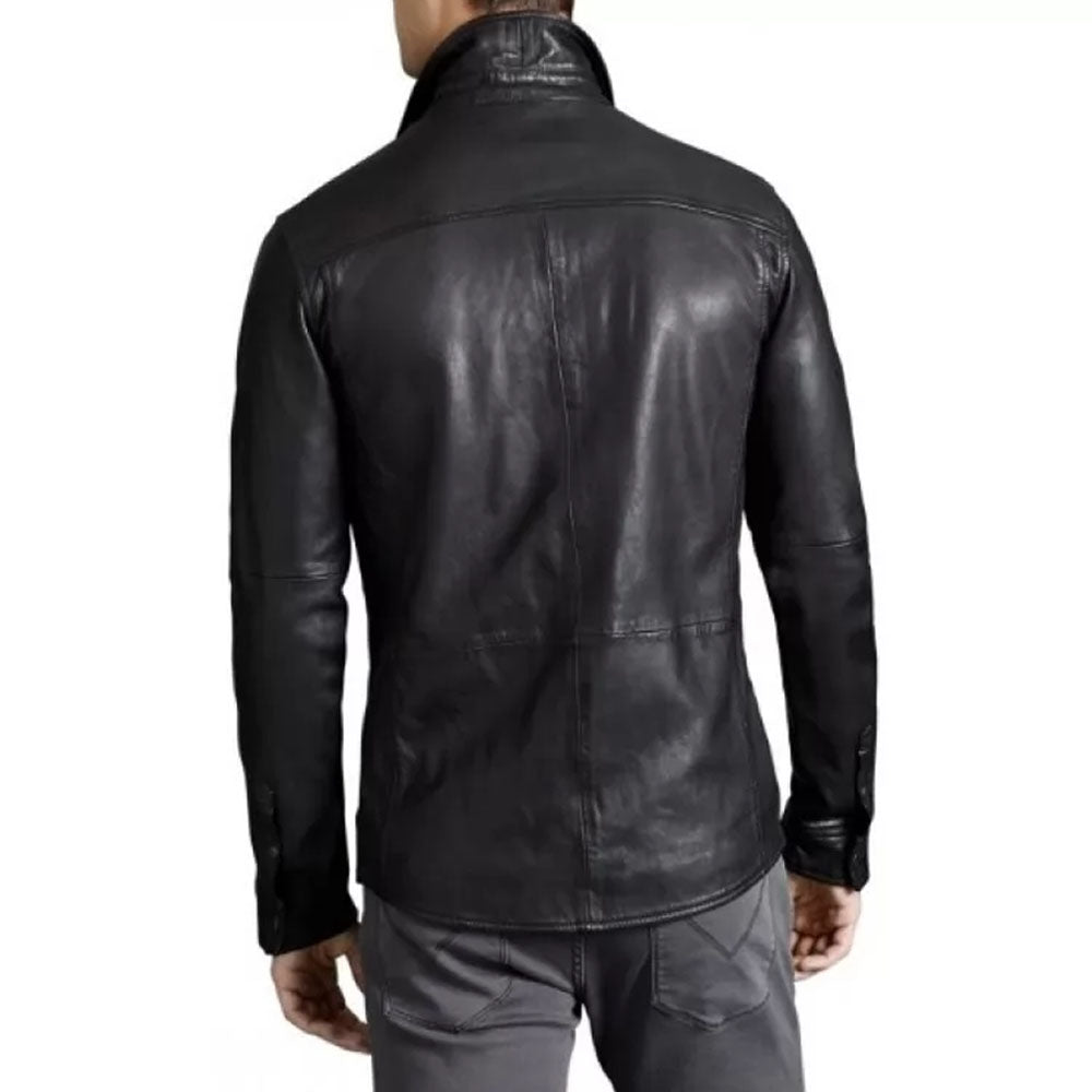 Men Trendsetting Real Sheepskin Black Leather Shirt