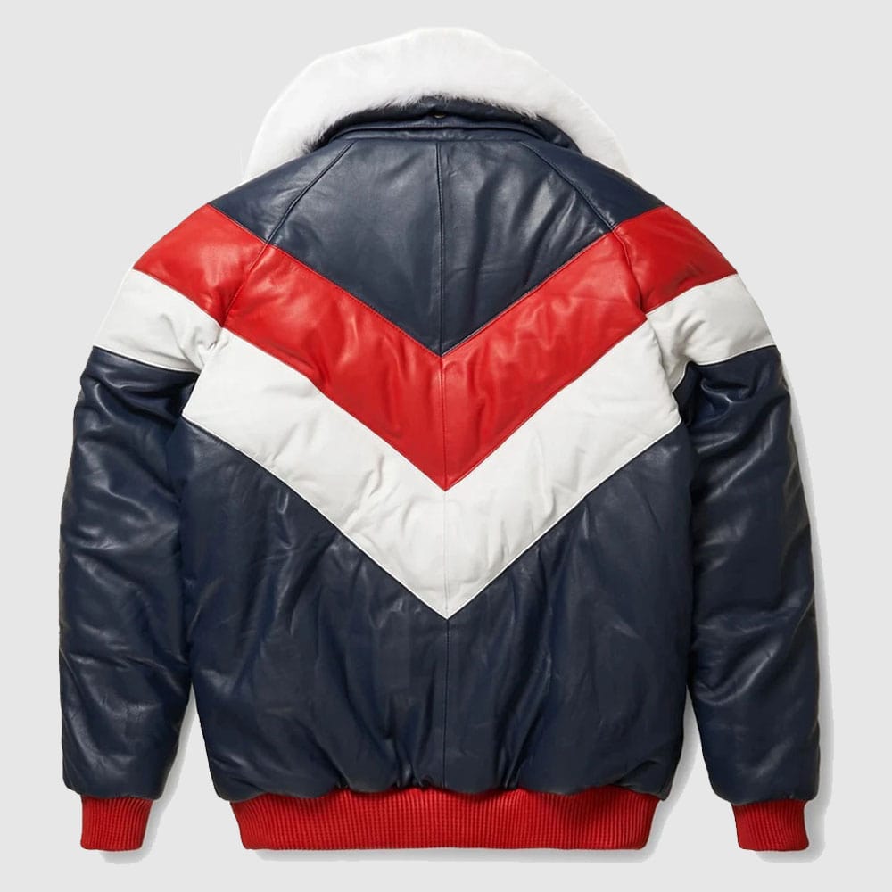 Red and White V Bomber Leather Jacket