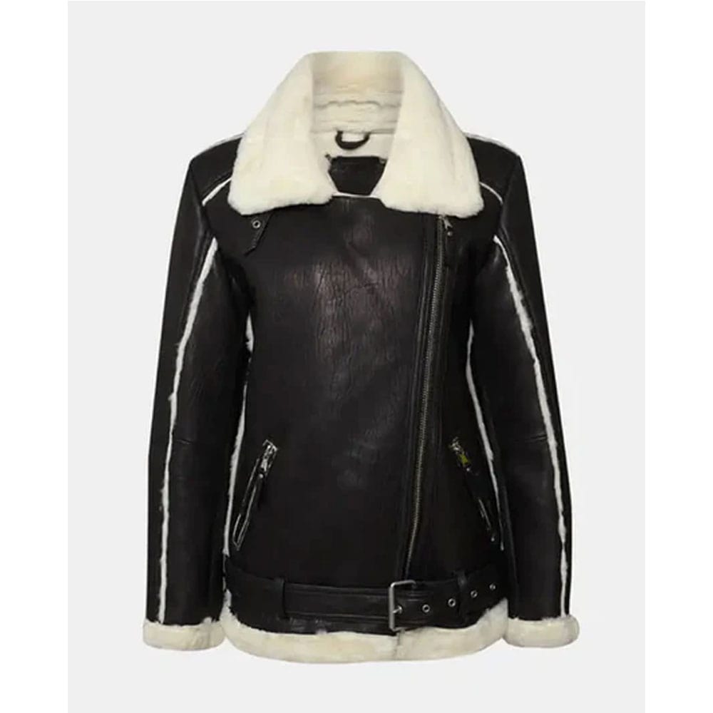 Women’s Black Oversized Shearling Leather Jacket